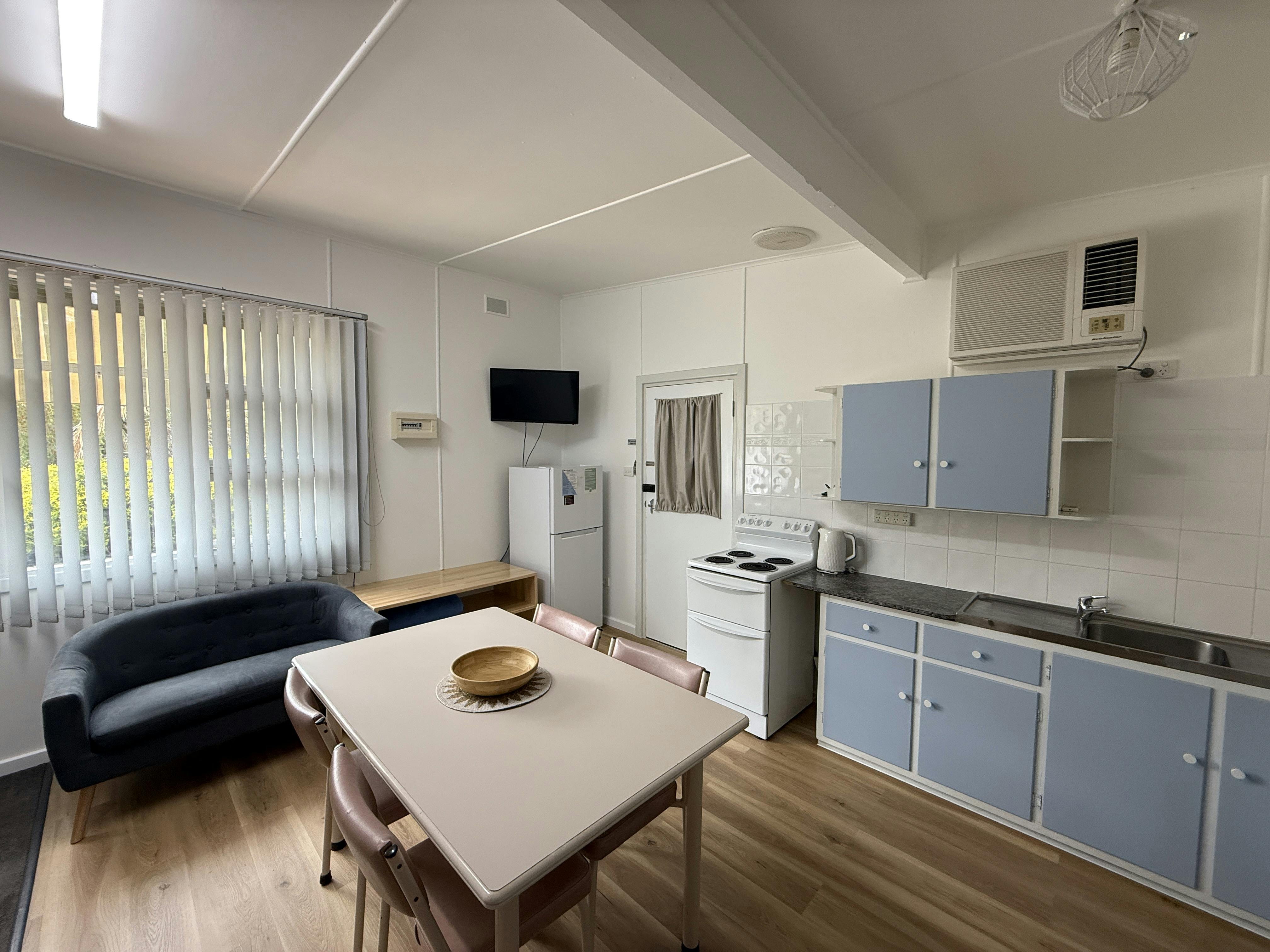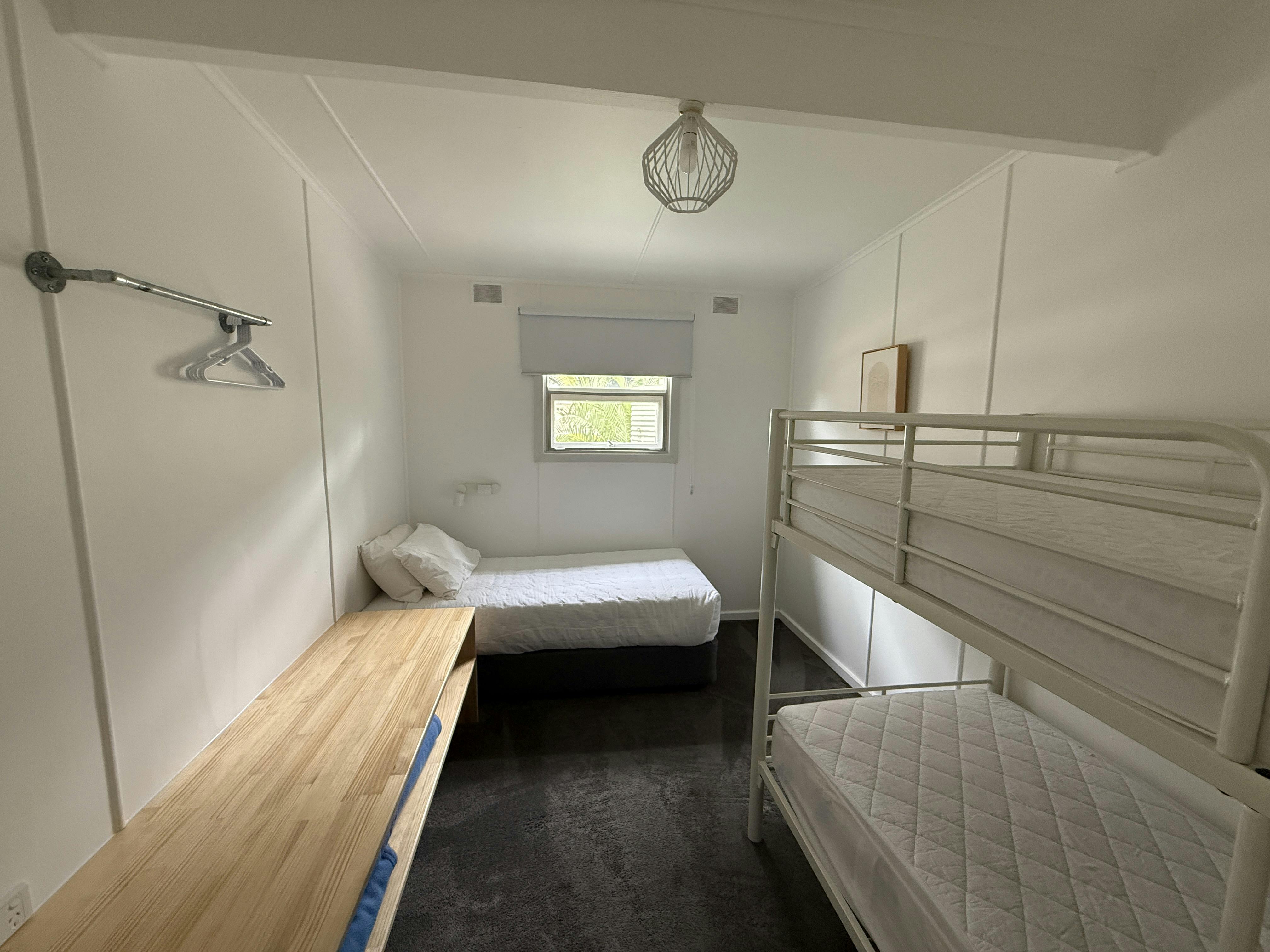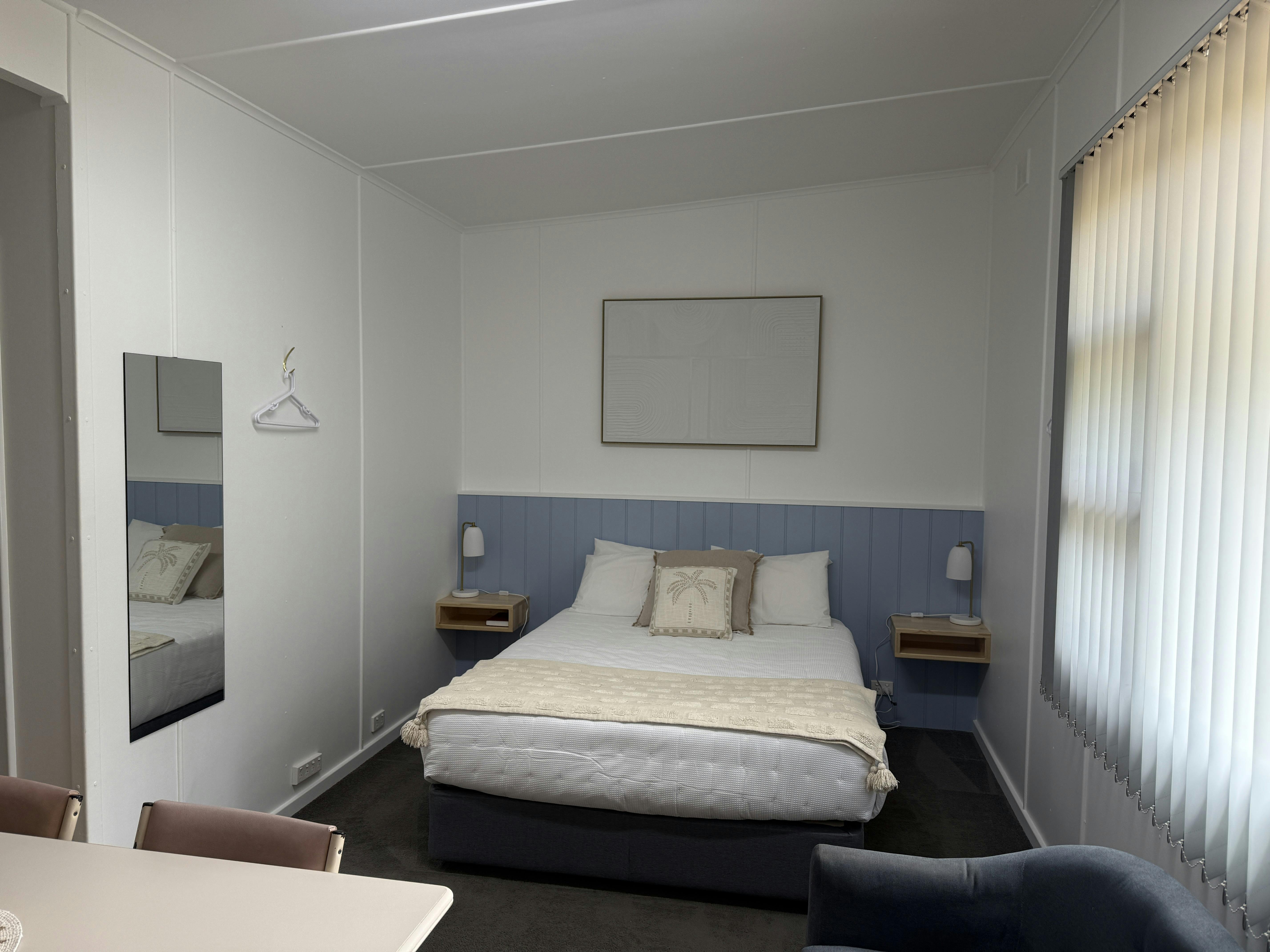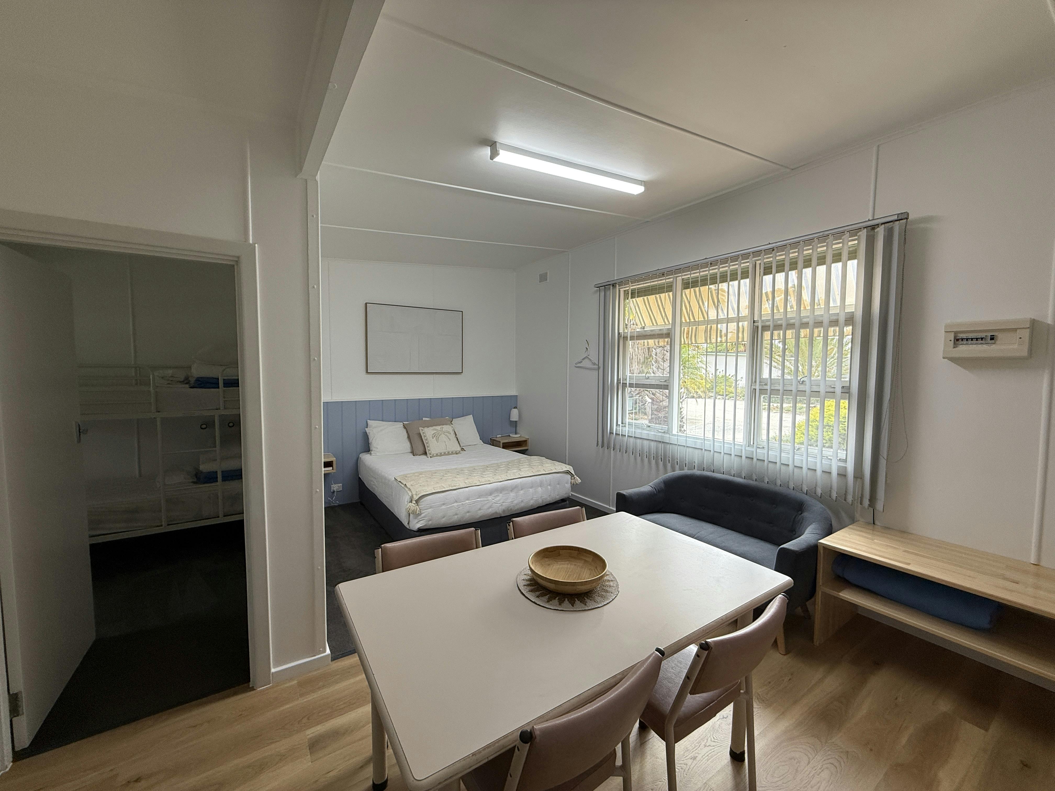 A very comfortable apartment featuring an open plan living, dining, kitchen area with a queen bed, plus a separate bedroom with three single beds. (One of these apartments has the Queen bed in a separate room and the other bedroom has a Double bed and a Single) Suitable for up to 5 people.